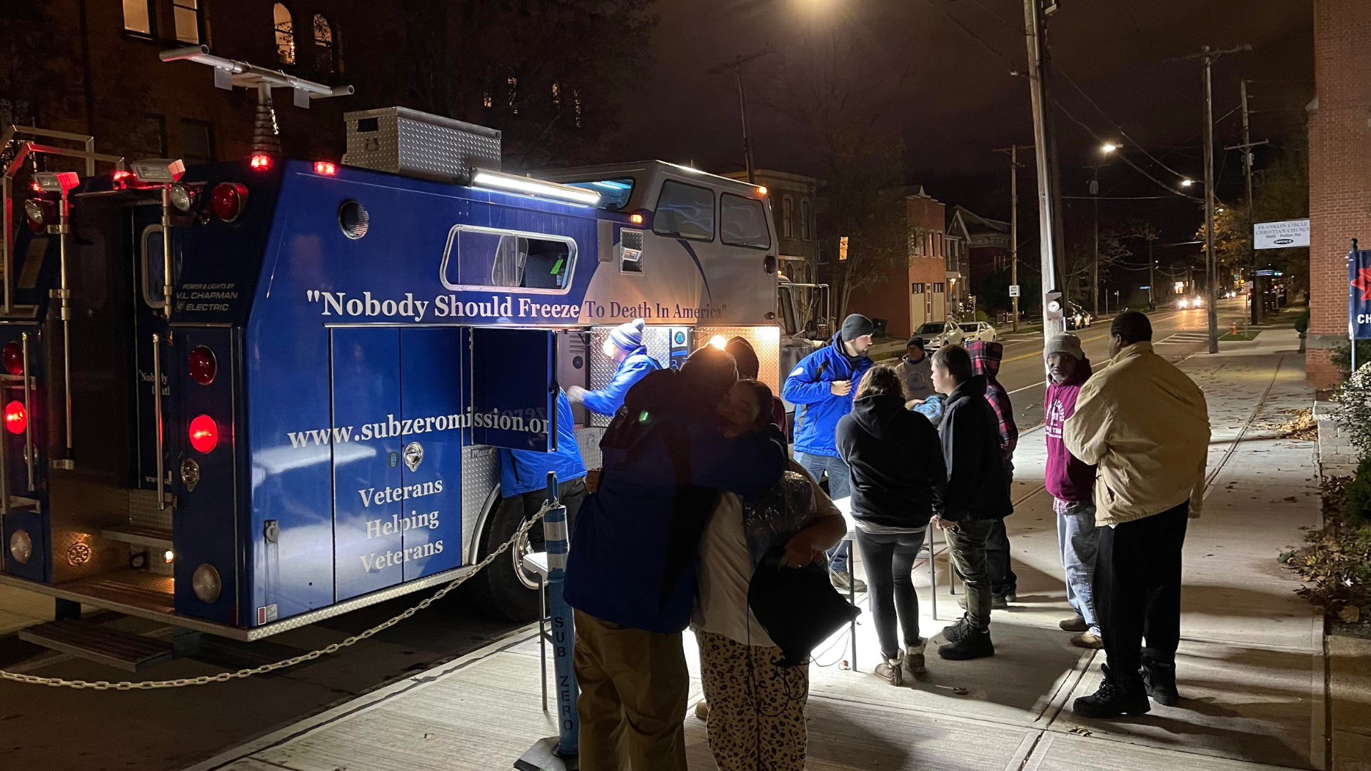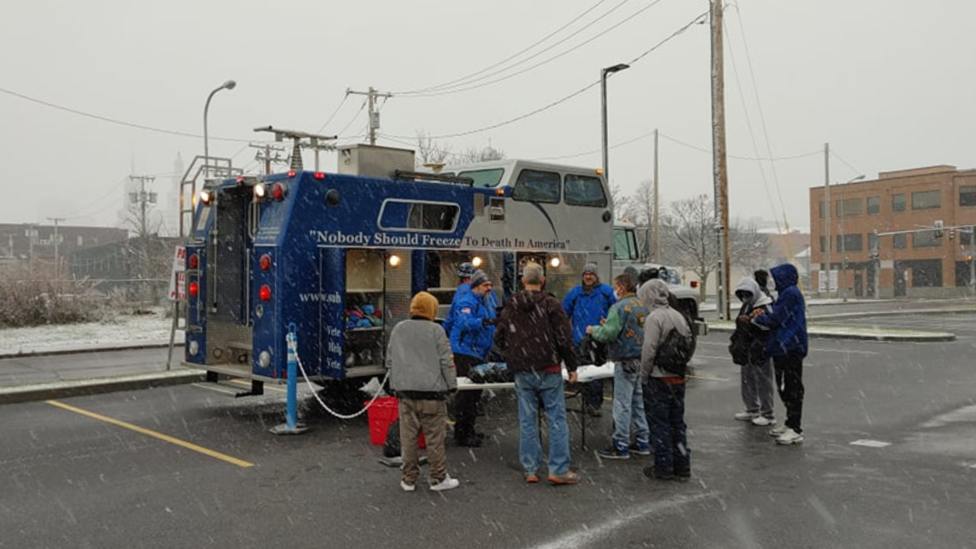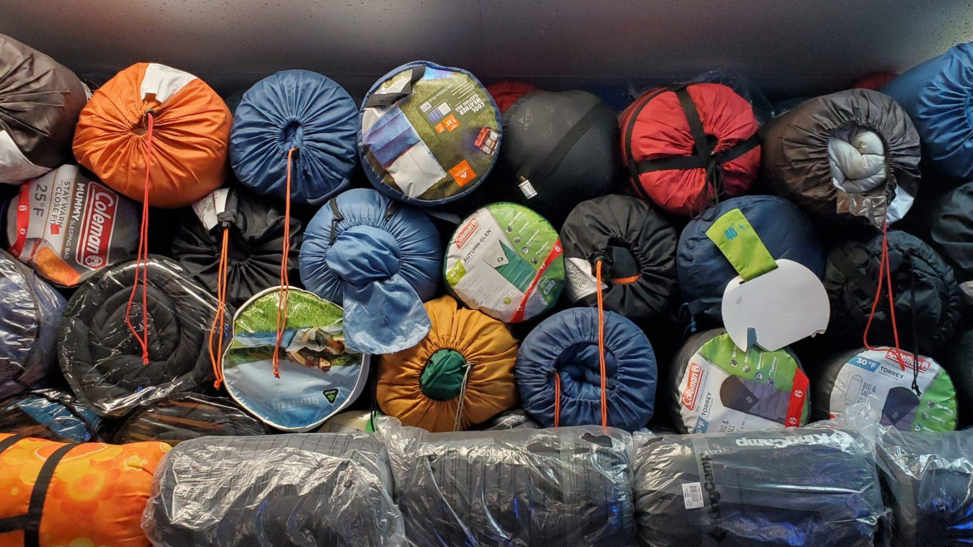 Volunteers with The Sub Zero Mission sorting and loading hats, coats, gloves, boots, and sleeping bags for winter outreach to people experiencing homelessness.