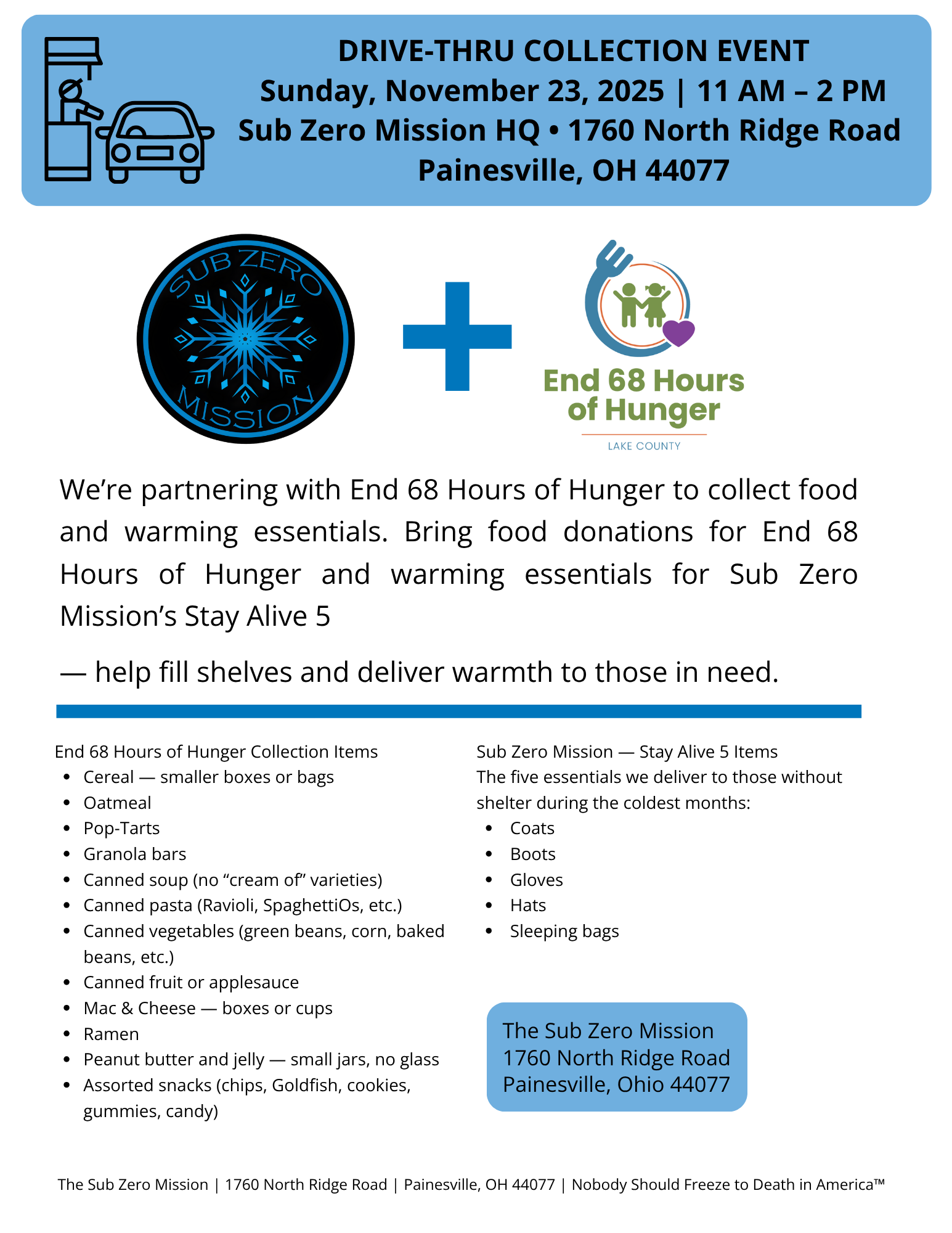 Drive-Thru Collection Event | Partnering with End 68 Hours of Hunger