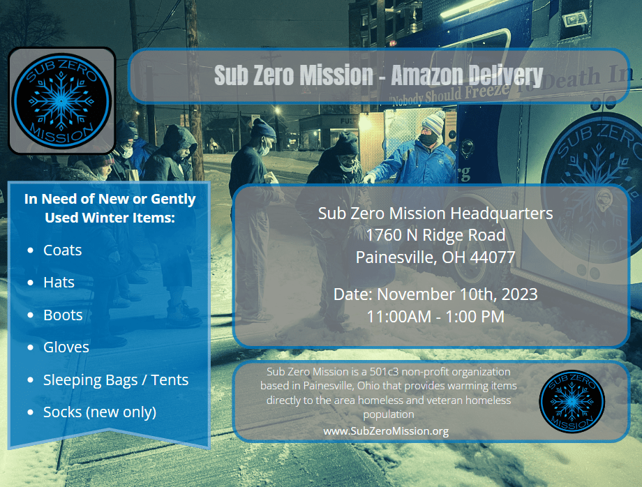 Dominion Energy has been supplying collection bins at multiple Energy plants all through out Northeast Ohio. From now until November 9th you may stop at any of listed plants and drop off our needed "Stay Alive Five" items, Coats, Hats, Gloves, Boats, and/or Sleeping Bags.