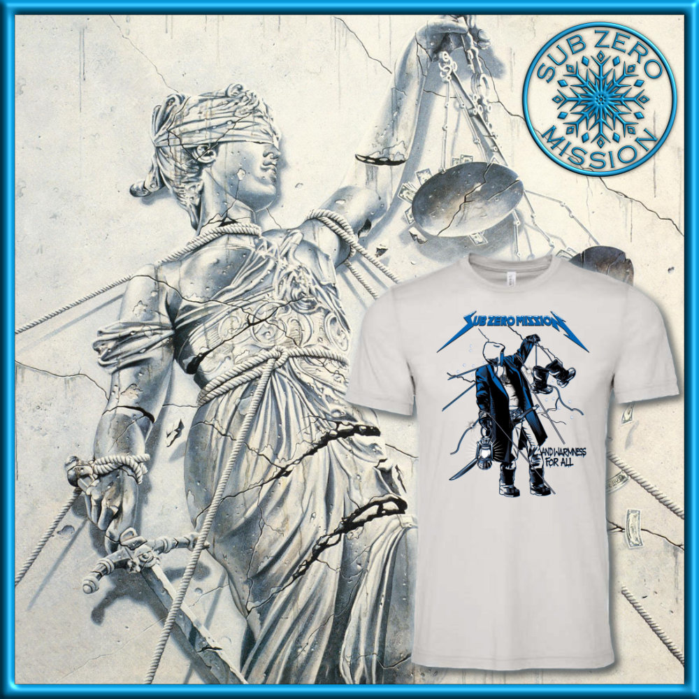 Our take on the classic Metallica “And Justice for All” album cover comes alive with a Blue Coat Missionary breaking the binding ropes to warm the homeless.