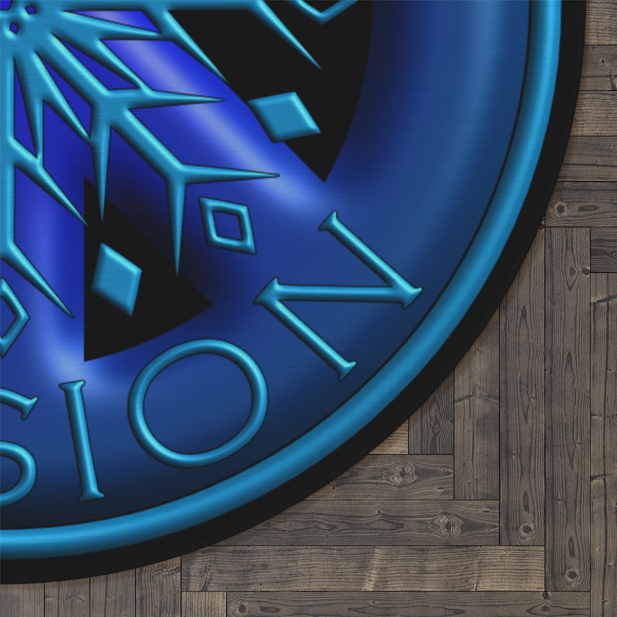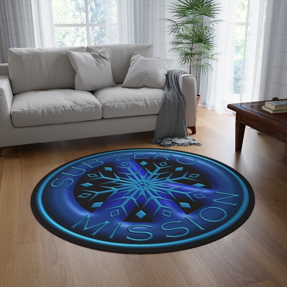 Our snowflake logo with peace sign is printed on this round 100% polyester chenille rug in picture-perfect quality. It features a coated backing and hemmed edges for durability.